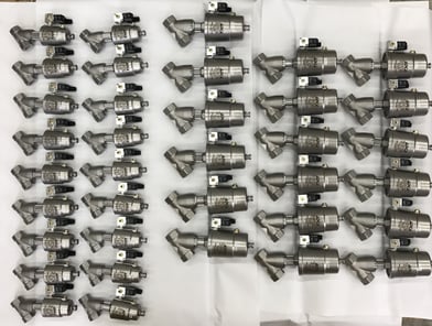 dampfEXPERTE GmbH liefert 36 Stück Schrägsitzventile für ein Industrielles Kühlsystem. Die Ventile vom Typ VALSTEAM ADCA PAV21 in den Grössen 1" und 11/4" zusammen mit den direkt wirkenden 24VDC Magnetventilen werden zum zu- und abschalten von Teilen einer Kunststoffverarbeitungsanlage verwendet.